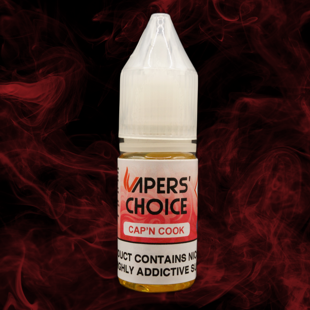 Our Cap N Cook e-liquid is available in 10ml bottles with nicotine strengths of 3mg, 6mg, 12mg, and 18mg. With a 60% PG ratio, this e-liquid prioritizes flavour intensity and a smooth throat hit, making it an ideal choice for mouth-to-lung vaping when paired with pod devices and starter kits.